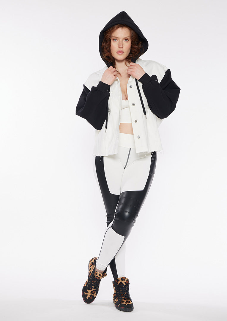 The Combo Jean Jacket blends timeless denim with a modern twist. Ideal for layering, it’s a must-have for any capsule wardrobe.