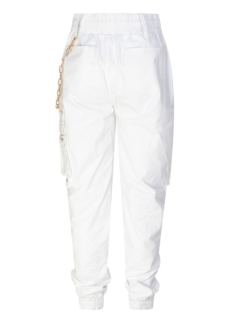 Relaxed fit with a tapered leg for a modern and polished look. Adjustable waistband for a tailored fit. Multiple utility pockets for practicality without bulk. Stylish side chains for a contemporary edge.